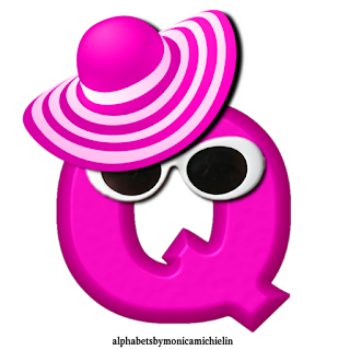 PINK ALPHABET WITH FLOPPY SUMMER HAT AND SUNGLASSES