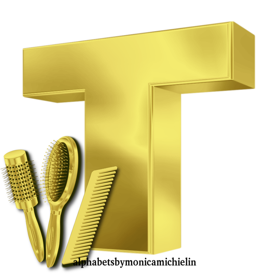 GOLDEN HAIRBRUSH, COMB ALPHABET, ALFABETO ESCOVA DE CABELO E PENTE DOURADOS LIPSTICK, COSMETIC