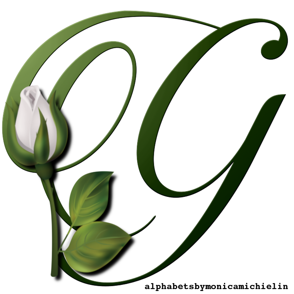 GREEN LETTERS WHITE ROSE ALPHABET PNG